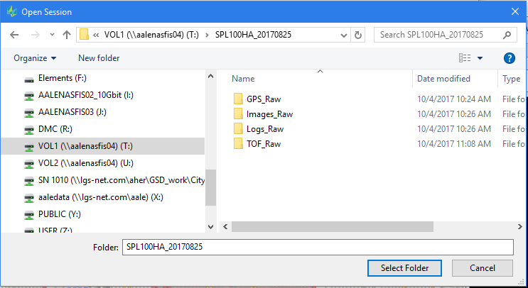 Browse for the "Raw_Data" directory that has both Imagery and SPL LiDAR data sub directories(TOF_Raw, Logs_Raw, Images_Raw, GPS_Raw)