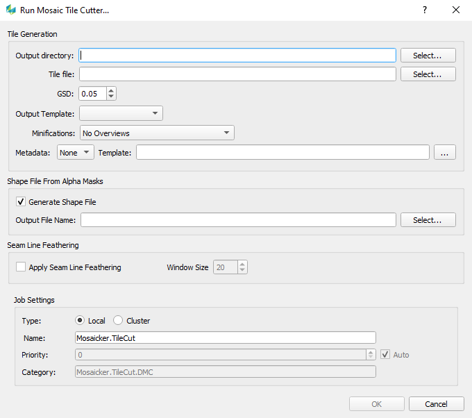 In the “Run Mosaic Tile Cutter” dialog user can configure settings for processing: