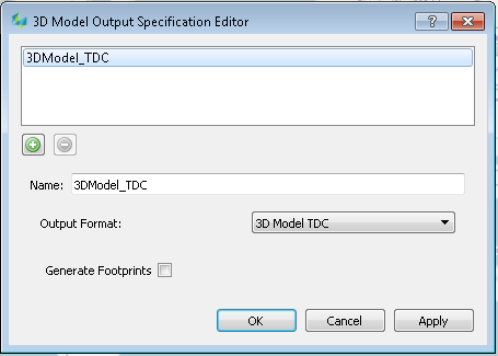 Only the 3D Model TDC format is available now because of the optimized workflow (QC, Texturing) for that format. Other formats like OBJ or CityGML can be exported from the TDC format by using the export functionality in the "Tools" menu.Generate Footprints: if enabled, a shape file per building rooftop polygon will be added into the specified output directory after the Building generation process