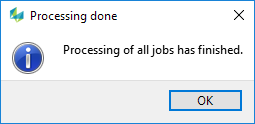 When a job is run on HTCondor cluster, please use the Job monitoring capabilities of the cluster to find out when the submitted job finishes. When processing locally, HxMap will show a dialog when all processing jobs have finished.