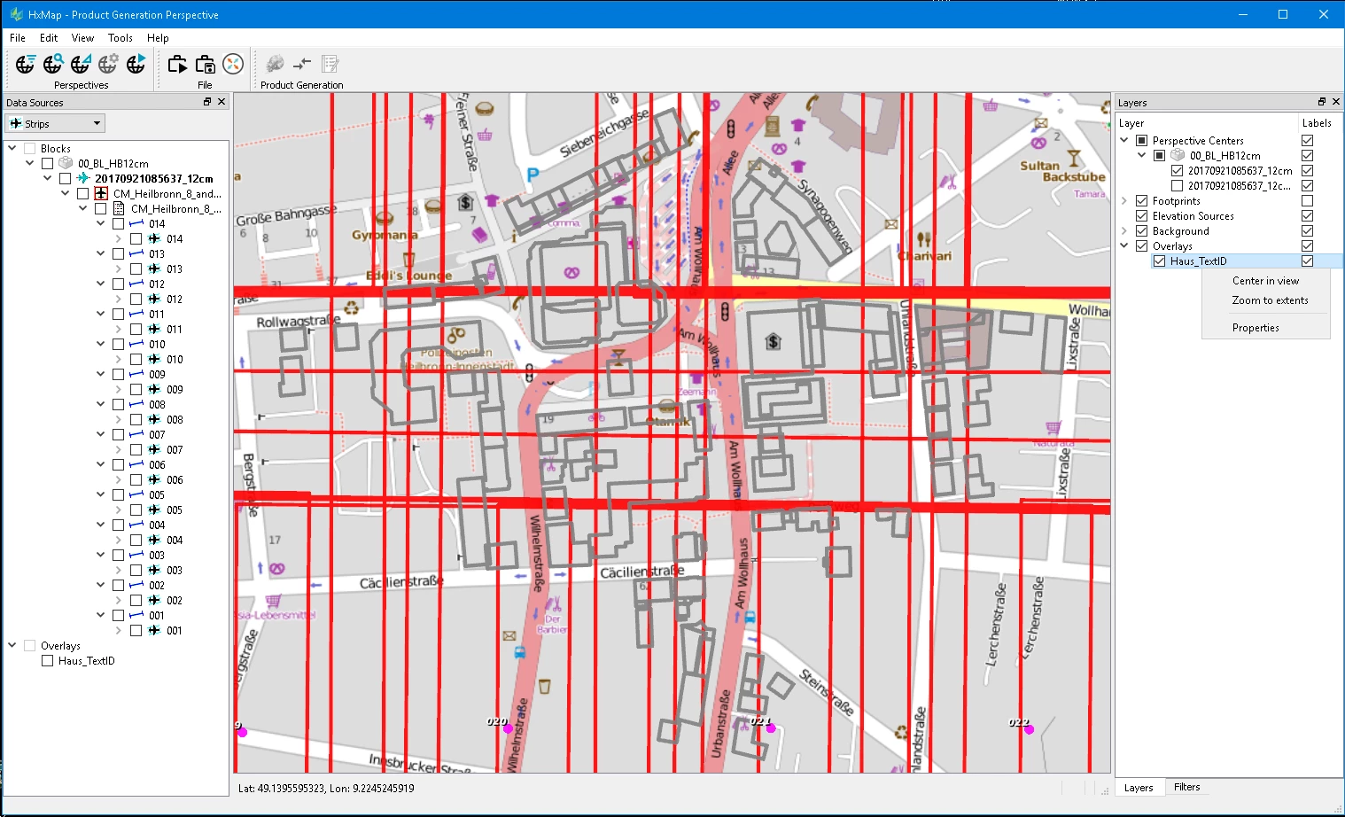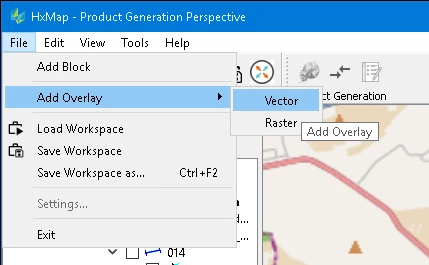 Go to ‘File’ > ‘Add Overlay’ > ‘Raster’ in any of the perspectives. Select one or more files of the supported file types (*.tif, *.ads, *.jpg). HxMap will load the images to the main map window using the georeferencing information provided.