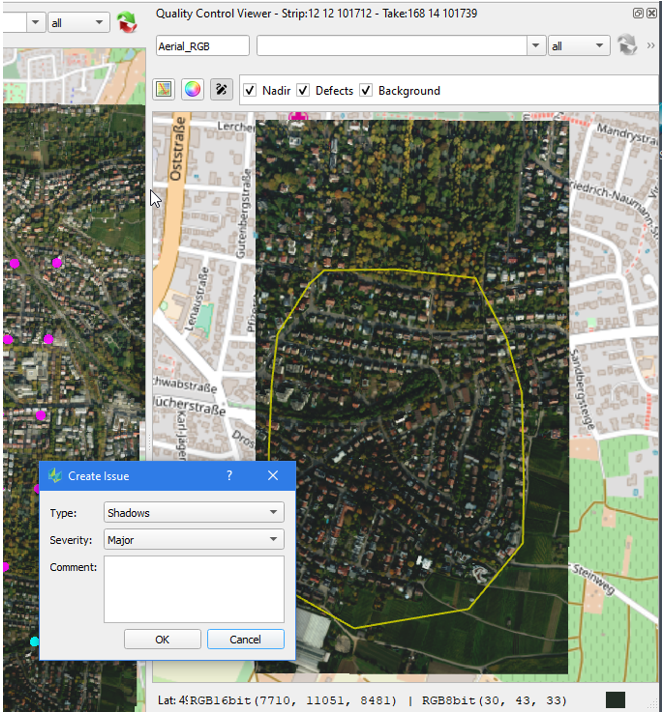 In the upcoming dialog, pick the type and severity of the QC issue. You may add further comments, if needed.