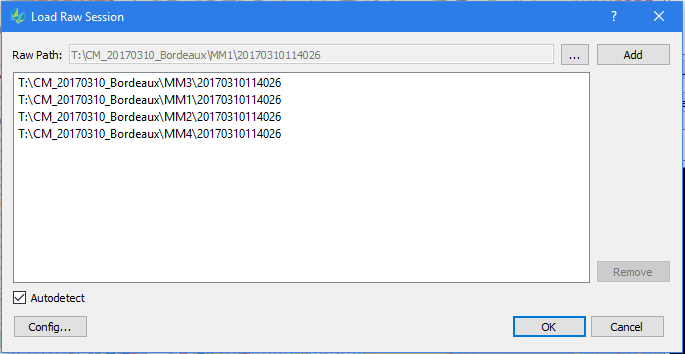 Activate the ‘Autodetect’ feature, then click 'Add'. Autodetect will automatically find the corresponding session data stored in other directories from the MM recording by FlightPro.