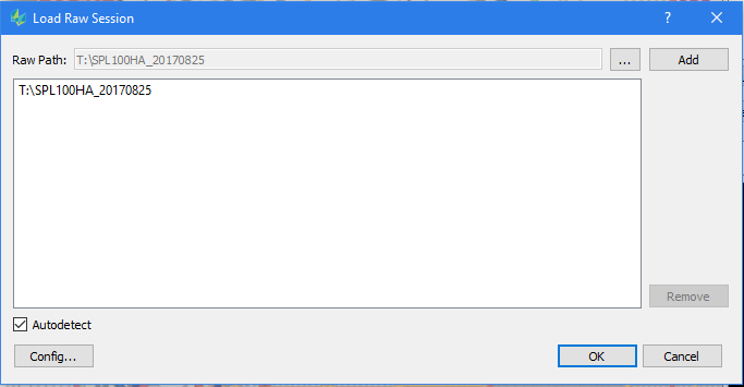 Clicking 'Add' will auto-detect the parts of the same raw session in other folders.