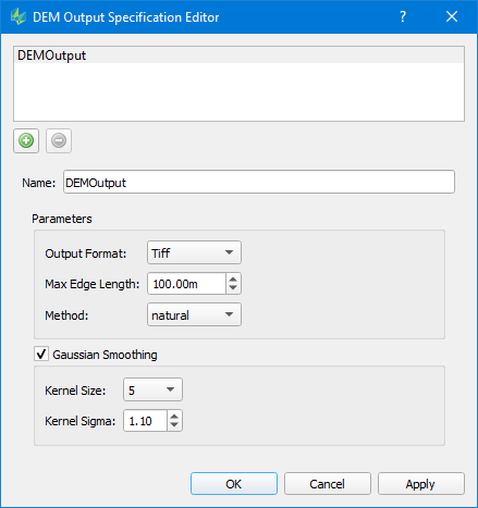 Gaussian Smoothing: optionally smooth the DEM raster output by Gaussian filter