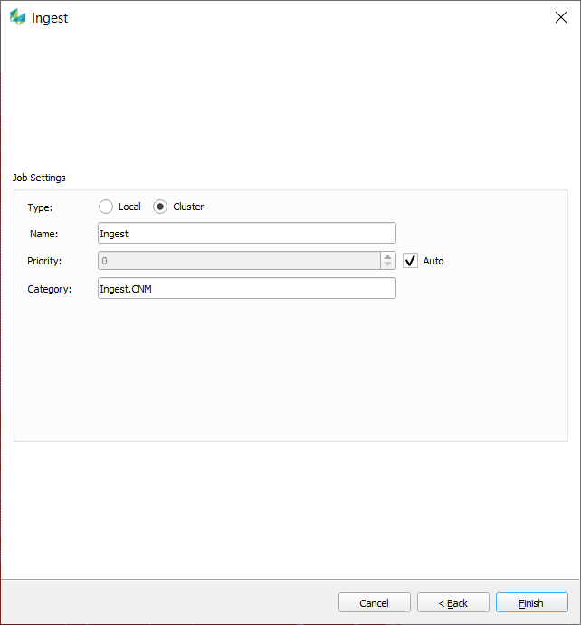 by default it uses the main job or product type like the one used in the Product Editor-->Filter (ORTHO, AERIAL, INFOCLOUD etc) followed by “.” separator and the Sensor System Family(as defined in the calibration section: Application Settings) at the end for HTCondor accounting to be used effectively. For example, ingest for ContentMapper will have the default of “Ingest.CNM”.