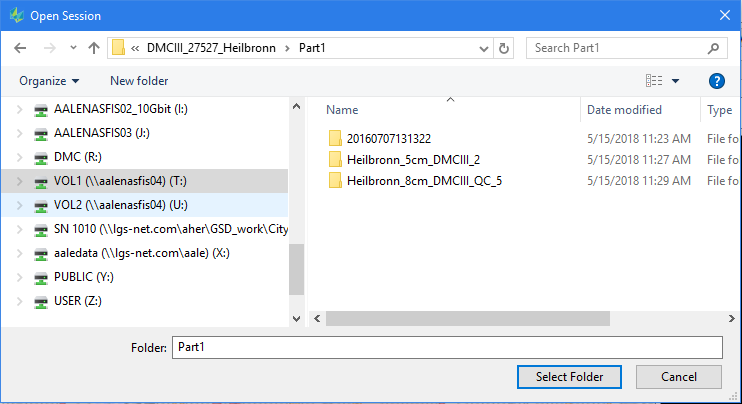 Browse for Partition 1 so that you can see session folders as well as missions