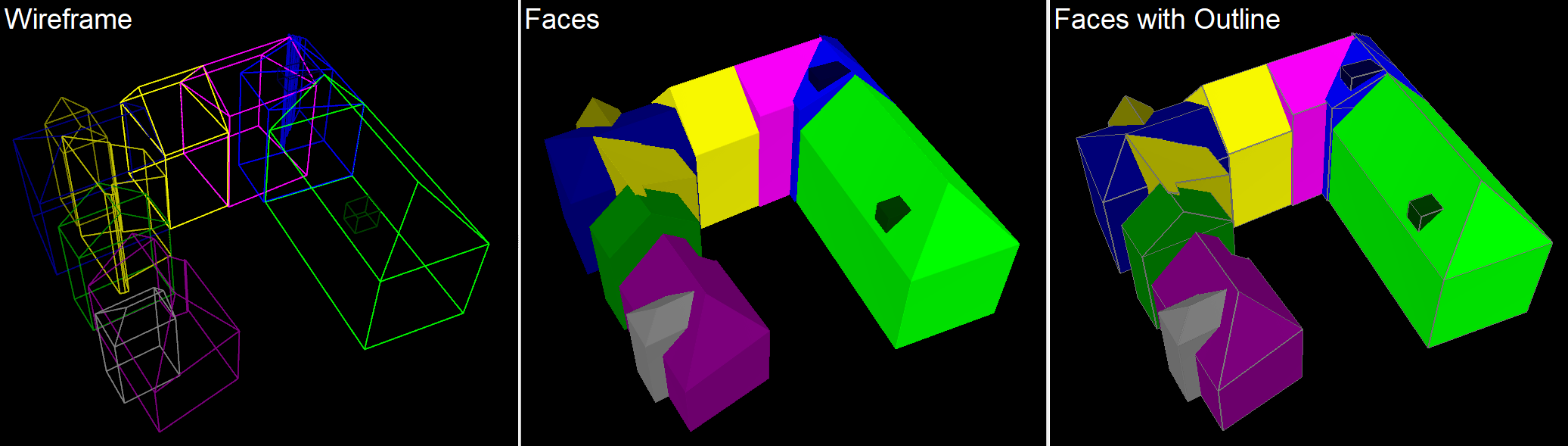 Faces with Outline: Faces are colorized in the object’s color and the edges are highlighted in grey