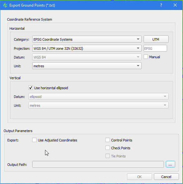 The dialog allows to define the reference system to be used for the export. Additionally it allows to export points either before or after running bundle block adjustment.