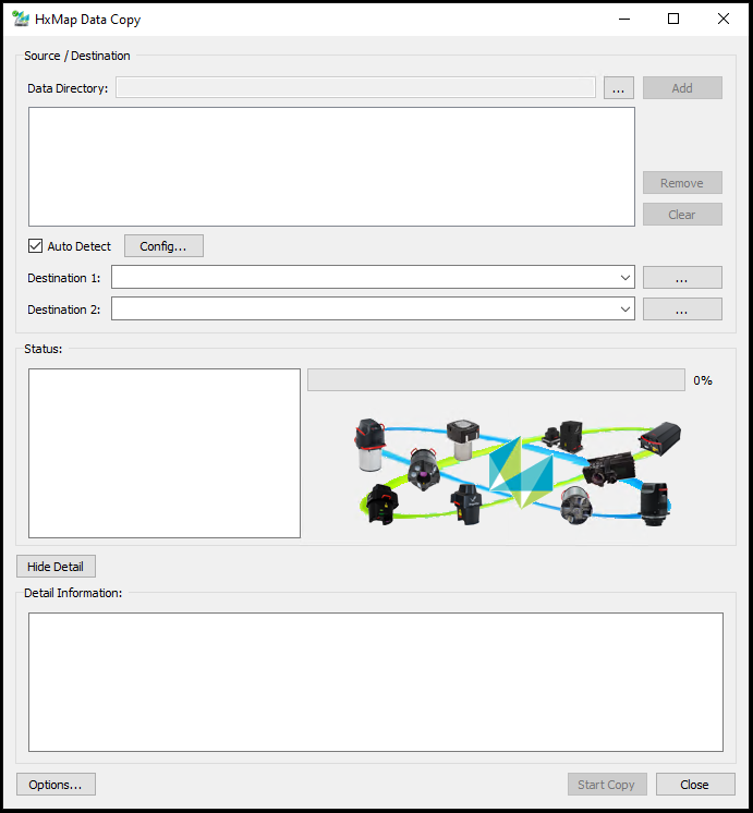 Once the MM and/or SSDs are connected via an appropriate device to the system used to execute the data transfer, launch the HxMap Data Copy Tool. The following GUI is shown:
