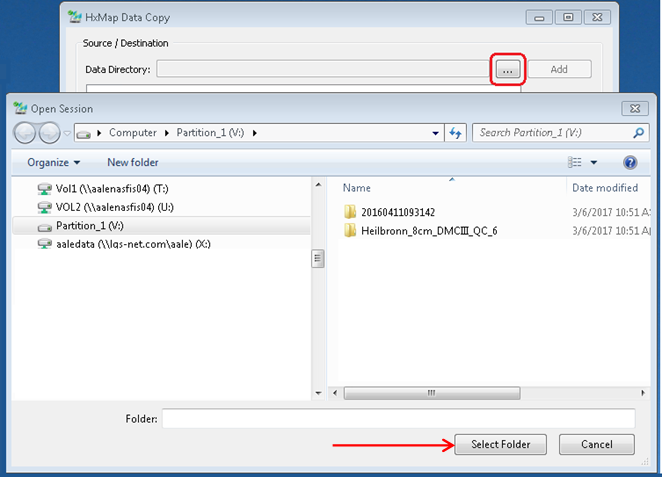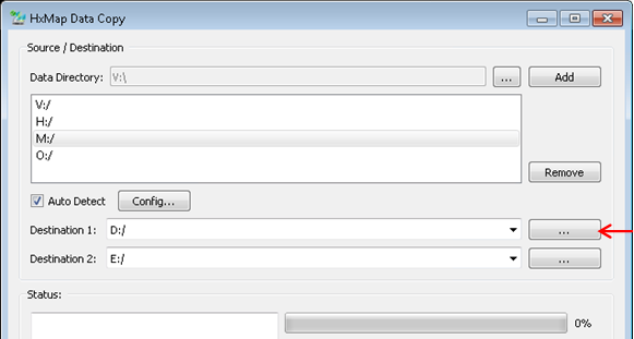First use the Browse button to pick the data directory. As long as the <Auto Detect> checkbox is set, it is sufficient to browse only to the first MM. The data copy tool with then use described auto-detect logic to automatically search and detect the remaining MM as soon as the <Add> button is pressed.