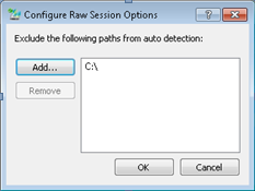 The user can exclude drive maps from being evaluated during the Auto detection process. Use the <Config> button to open a dialog, which allows to add path names respectively to remove path names from the list.