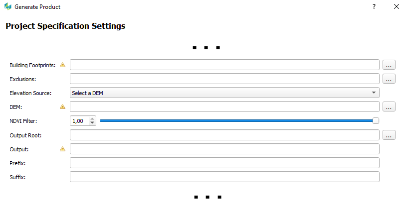 Exclusions: The user can also specified areas that are to be excluded from processing. This is useful, for example, to avoid processing areas with water bodies or other areas that have no value to the user. The areas are stored as polygons within a shapefile.