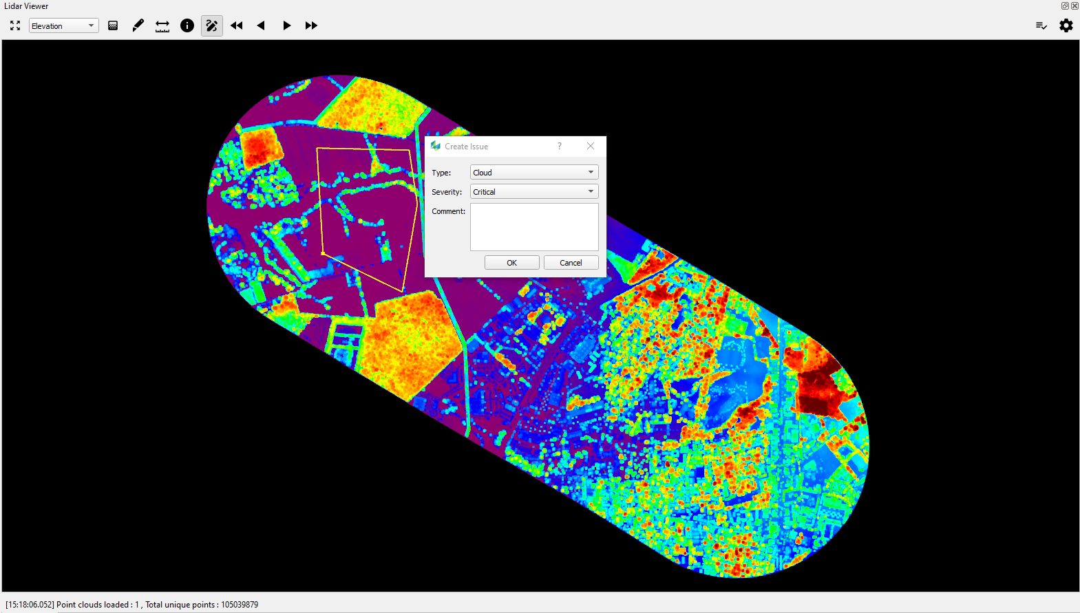 To QC Lidar point clouds manually, users can enable the QC polygon modes. By selecting the toggle drawing mode, users can then use the mouse to select the problematic areas to identify the problems. All issues will be automatically stored in the QC file for every session.